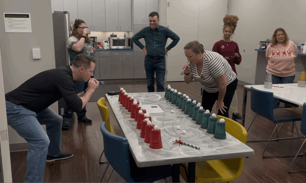 This Solo cup challenge leans into speed, focus, and just enough chaos to keep everyone smiling. Players race to clear cotton balls from inverted cups using only a New Year’s blower before shifting into a fast stacking challenge. It is silly on the surface, but requires control and concentration, making it a fun face-off game that works well for classrooms, staff events, or family game night. For details and rules, please check out this resource here.