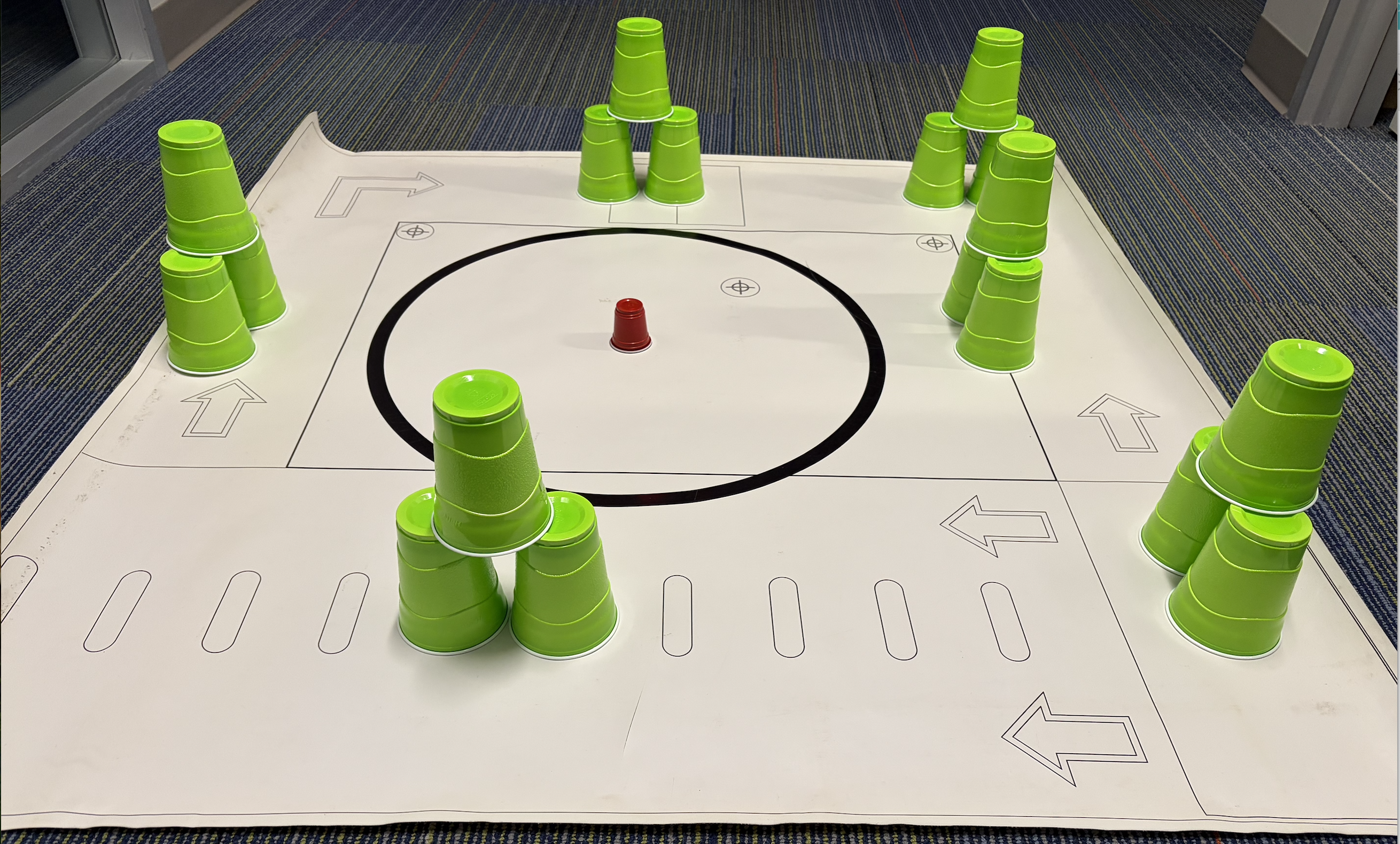 This robotics challenge puts teams’ driving skills to work as they use simple robot movements to knock regular and mini Solo cups out of a defined zone. The focus is on movement, timing, and teamwork, with just enough strategy to keep things exciting.