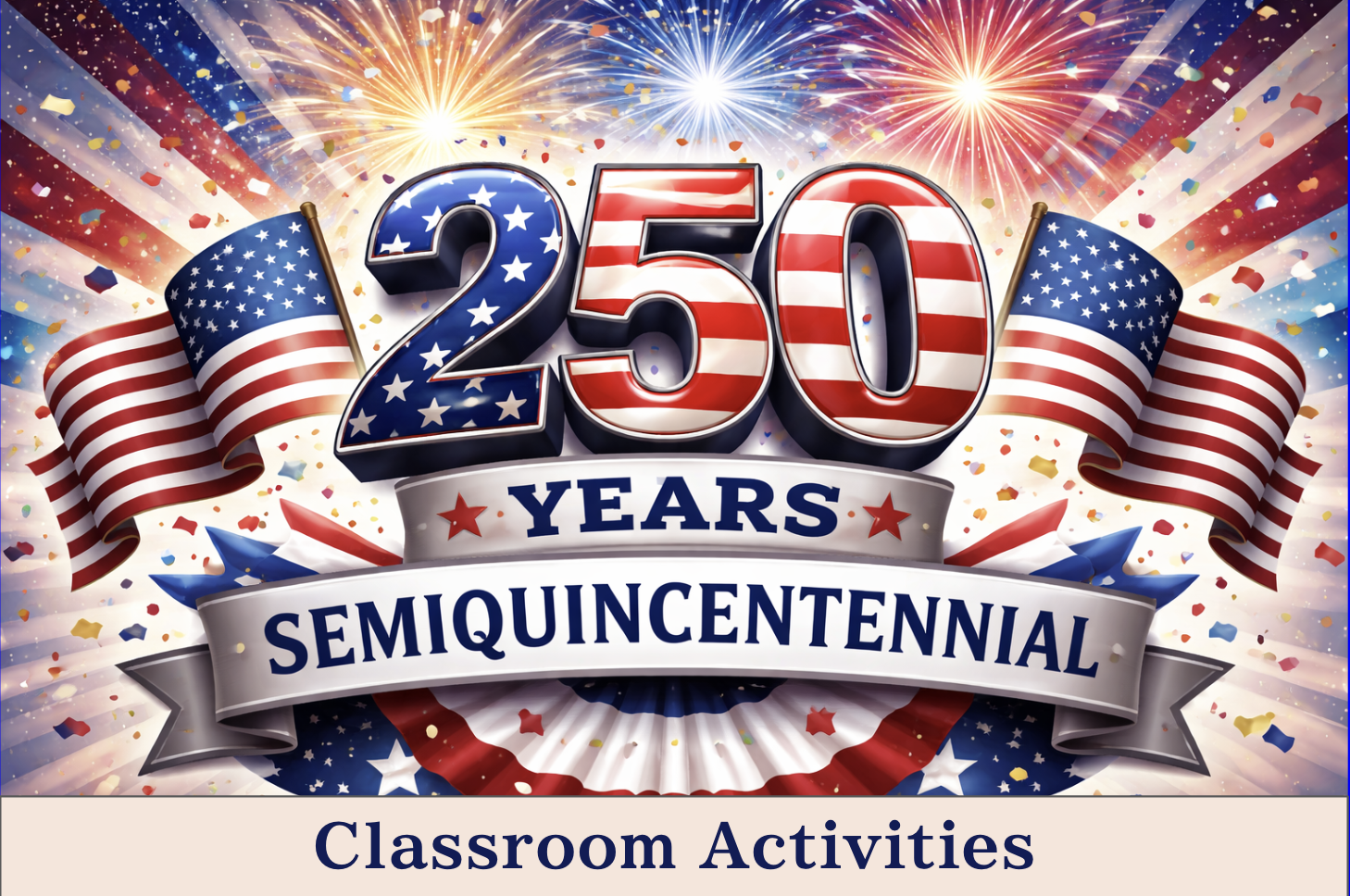 The Semiquincentennial is the 250-year anniversary of the United States. It marks 250 years since the signing of the Declaration of Independence in 1776 and will be officially celebrated on July 4, 2026. Schools and communities across the country will recognize this milestone through special events and educational activities leading up to and throughout the year.
