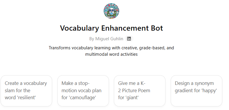 The process of creating a custom GPT is straightforward. Start with a clear description of what you want the GPT to do, provide examples of ideal responses, and refine through testing. Many educators find that their custom GPTs become invaluable classroom assistants that extend their teaching presence. To get you started, I’ve provided the custom instructions for all the GPTs in this blog entry. Feel free to steal and adapt them for your own use.