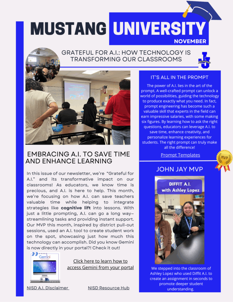 Then I started using it for bigger things, like drafting a coaching newsletter blurb, writing social media captions for our Mustang University highlights, and coming up with session titles that actually made teachers smile (“Nacho Average Coach Café,” anyone?).